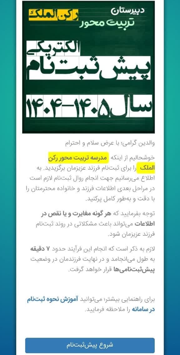 پیش ثبت نام دبیرستان پسرانه تربیت محور رکن الملک